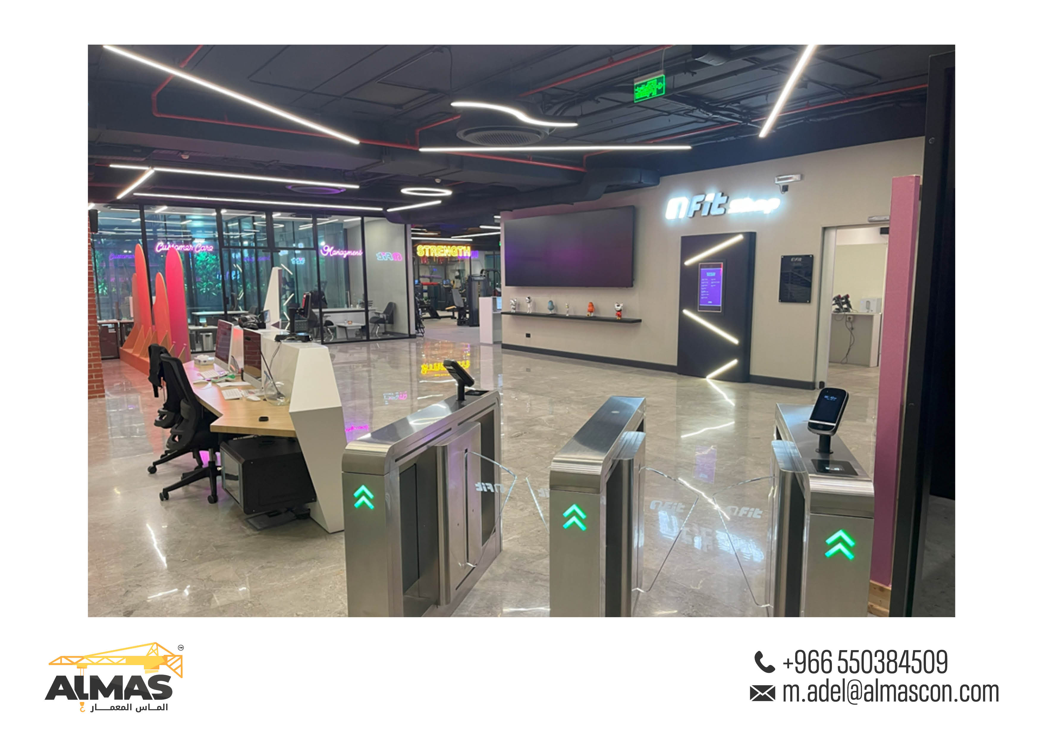 Elevating fitness spaces across Saudi Arabia with Almas Al Memaar's innovative design and construction for Fit Gym branches.