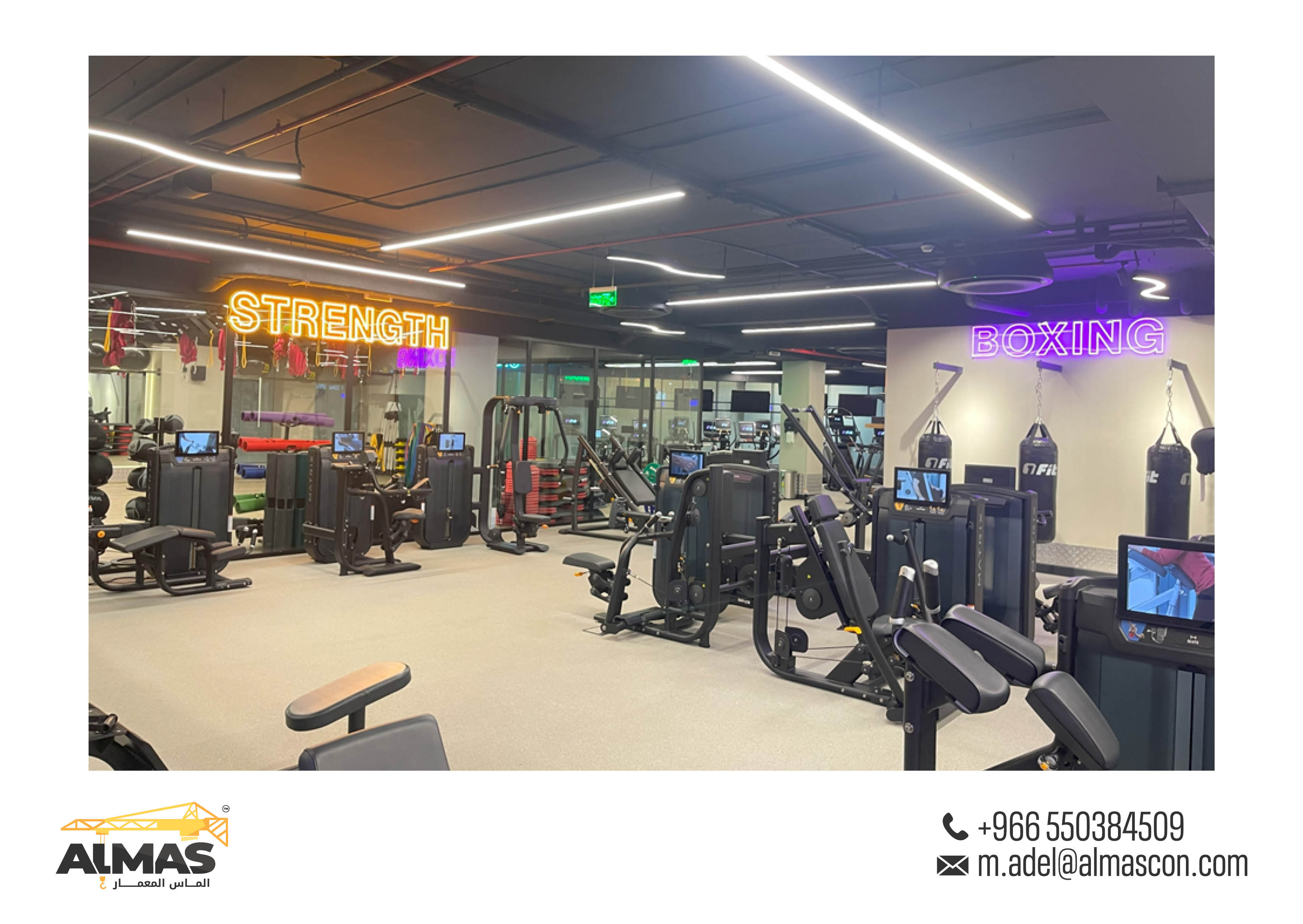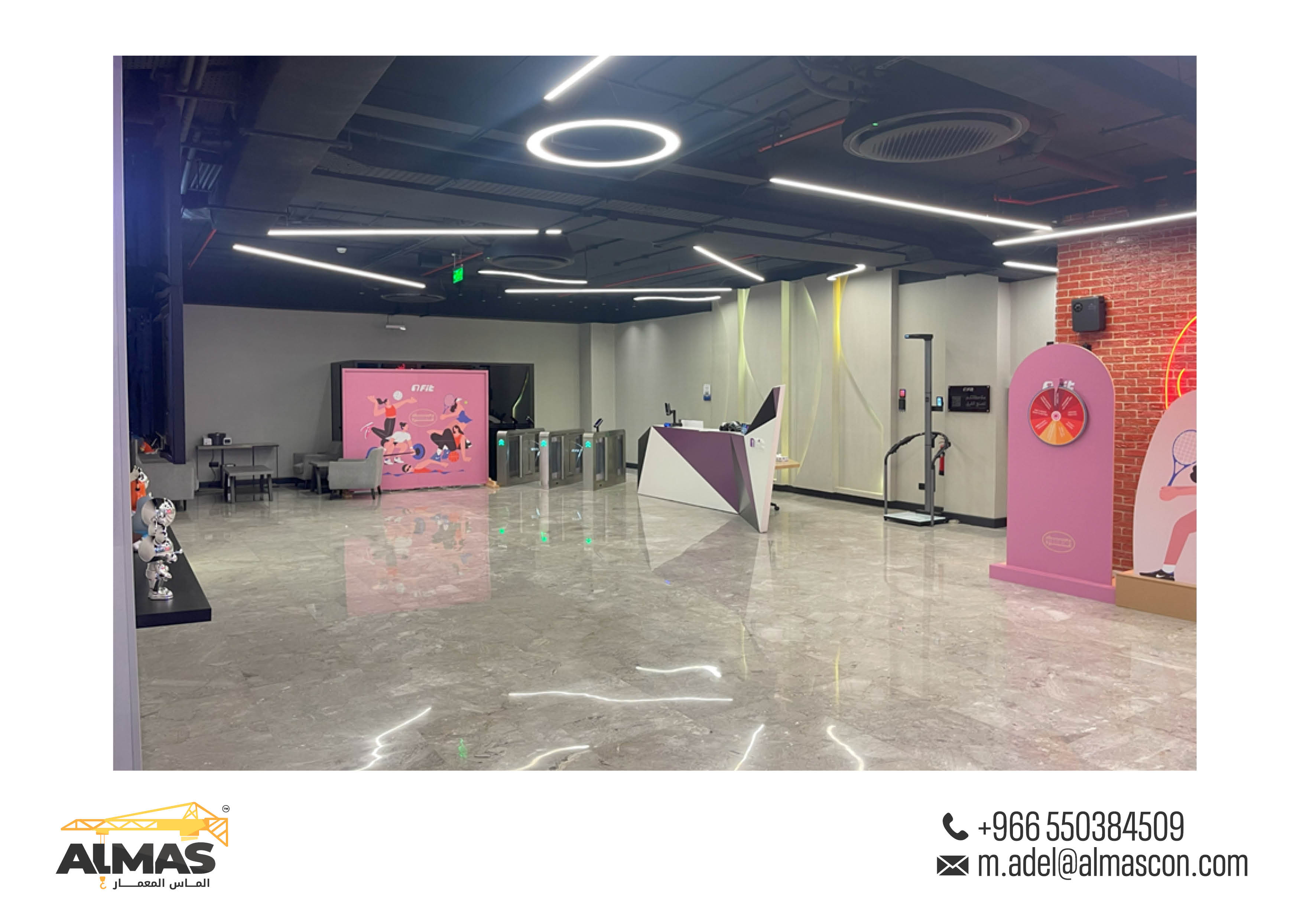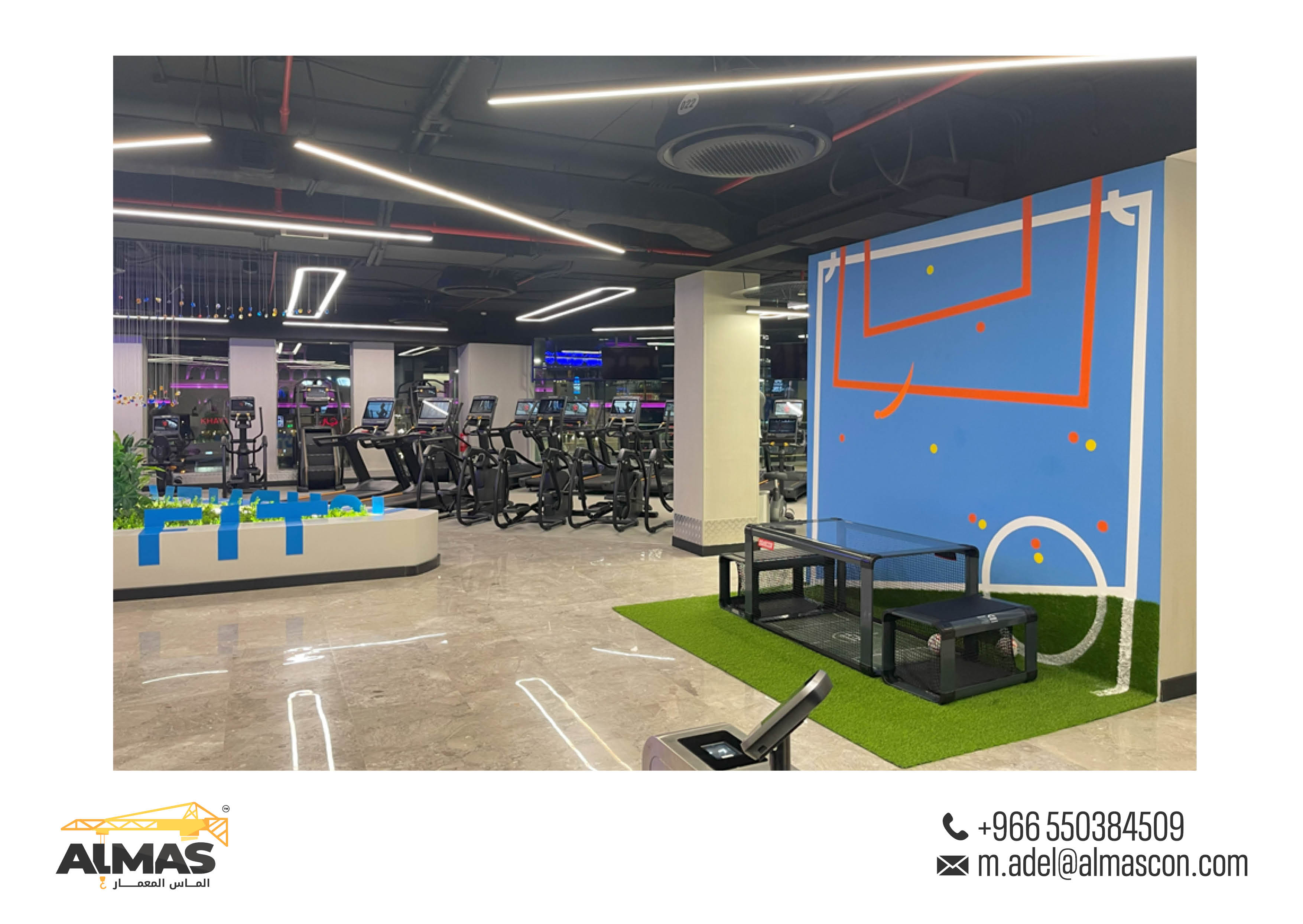 Elevating fitness spaces across Saudi Arabia with Almas Al Memaar's innovative design and construction for Fit Gym branches.