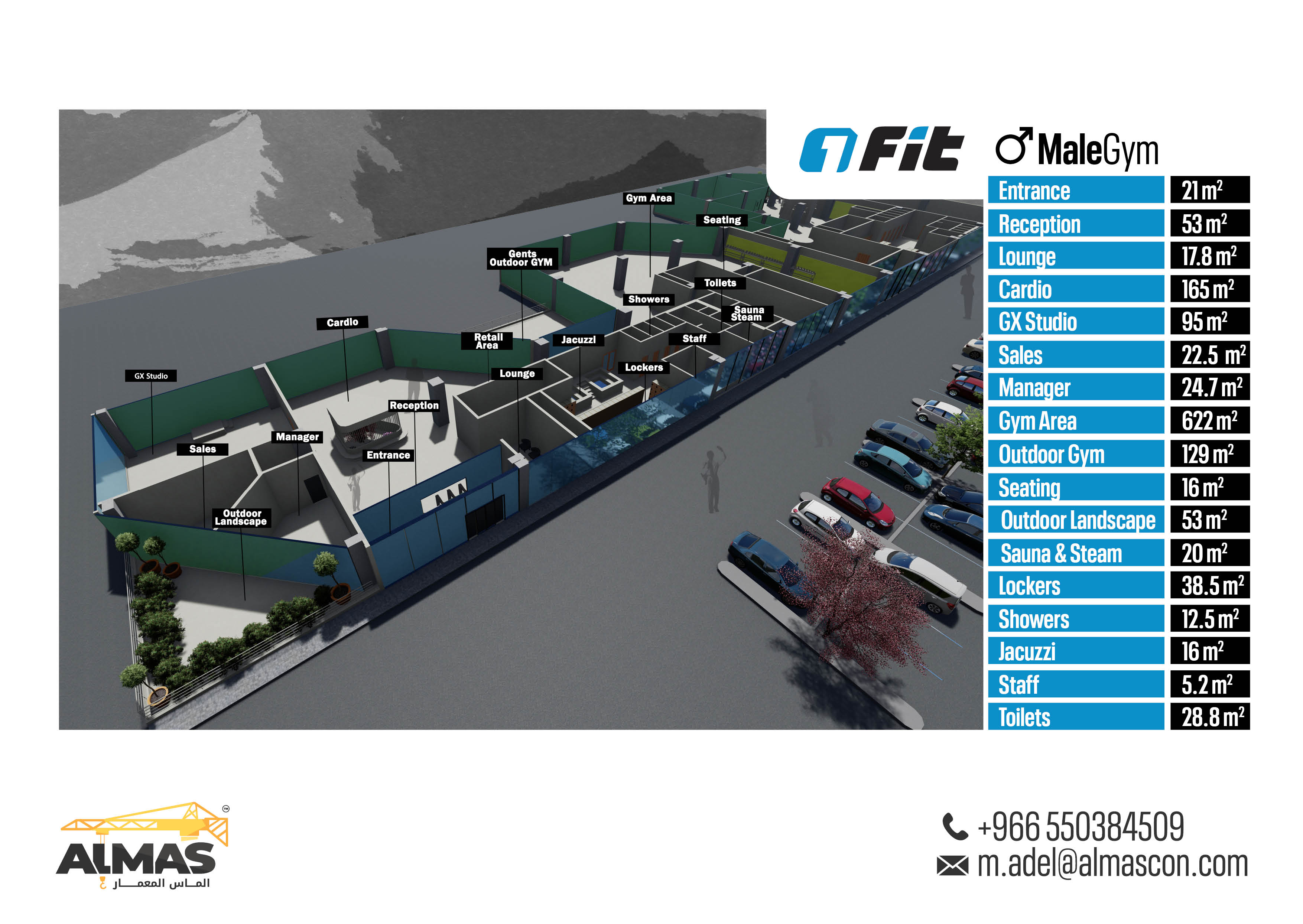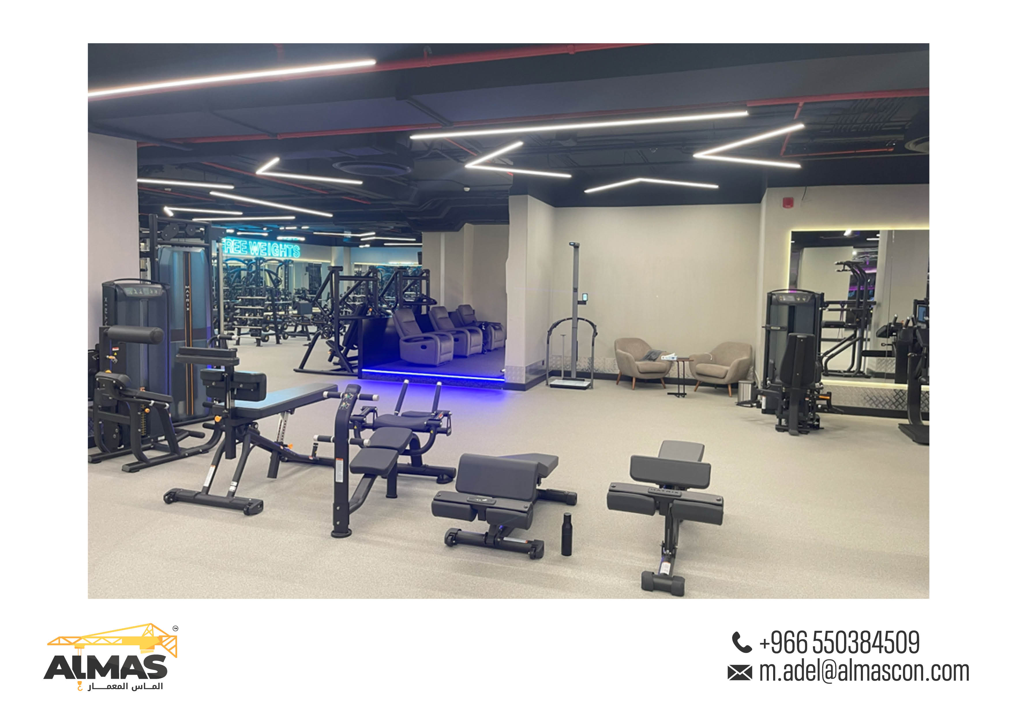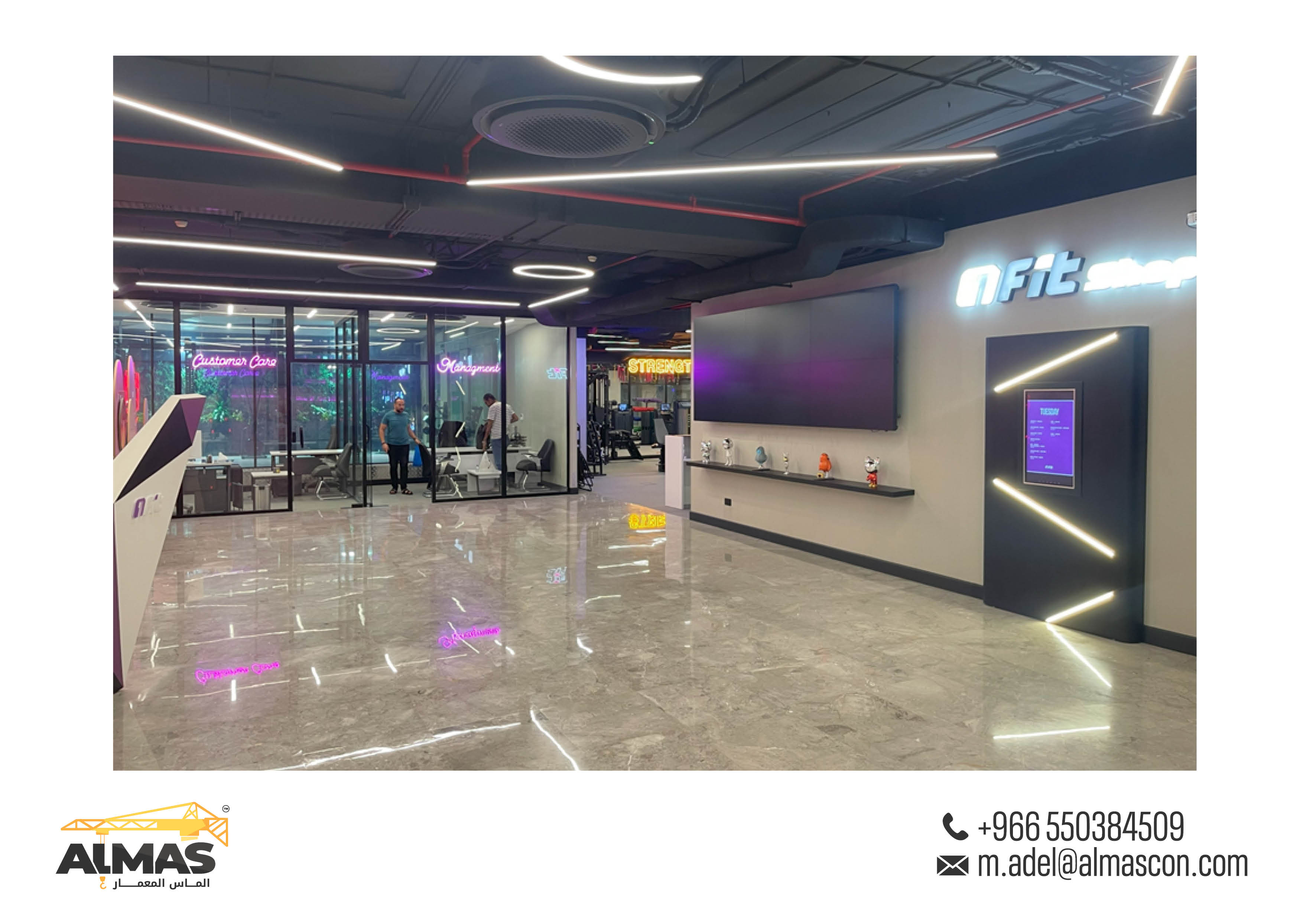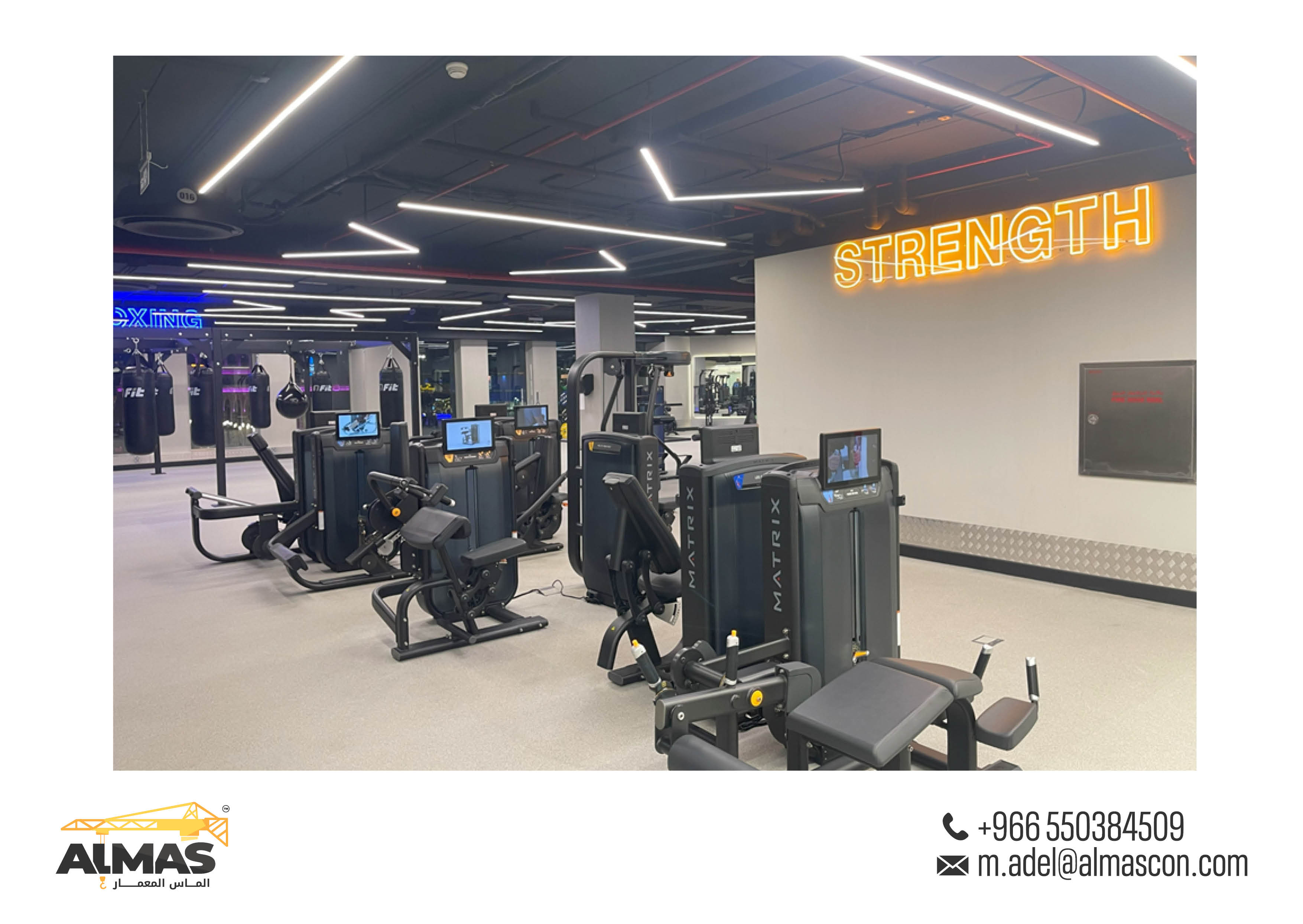 Elevating fitness spaces across Saudi Arabia with Almas Al Memaar's innovative design and construction for Fit Gym branches.